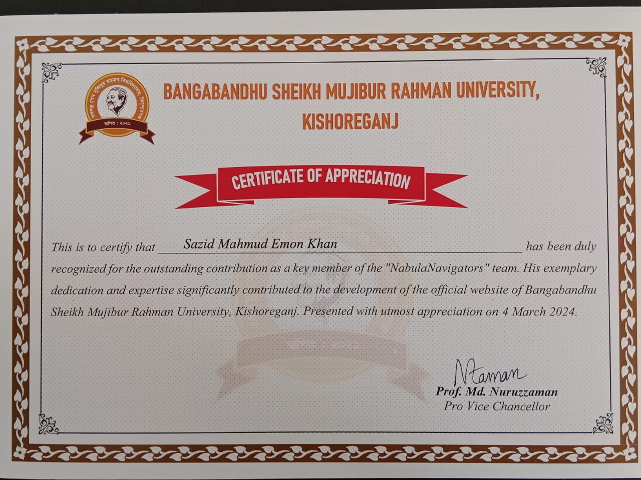 Hi, I’m Sazid Mahmud, a Computer Science and Engineering student at Kishoreganj University. I’m passionate about learning new technologies, solving problems creatively, and continuously improving my skills in programming and artificial intelligence. I enjoy exploring how technology can make life easier and smarter. My goal is to grow as a thoughtful engineer who combines logic, creativity, and purpose in every work I do.